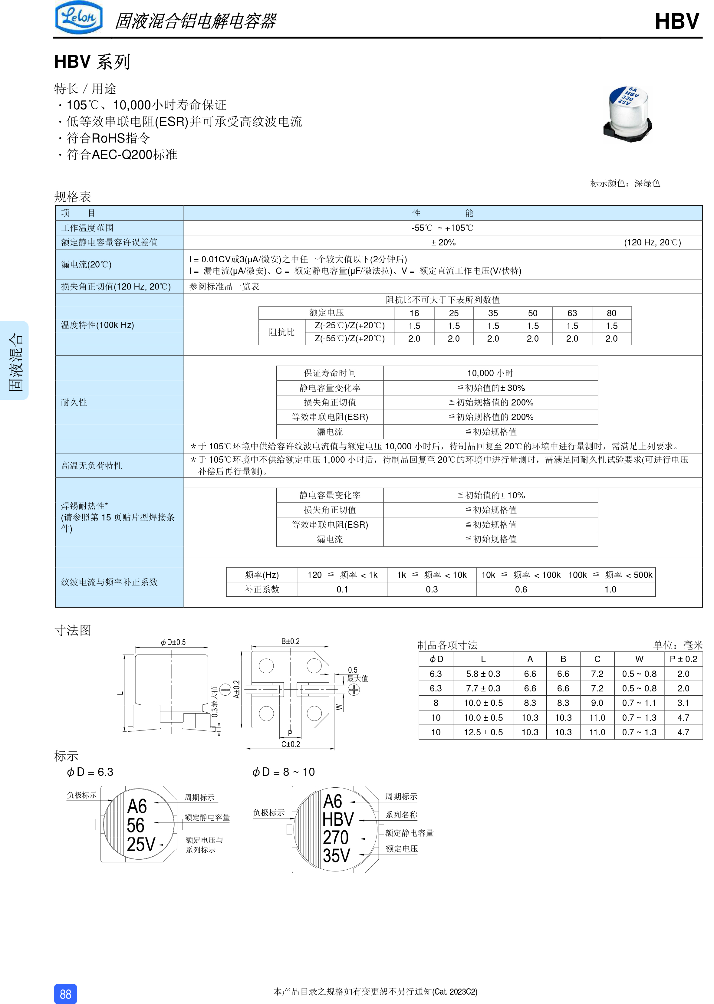 · 105℃、10000小時(shí)壽命保證