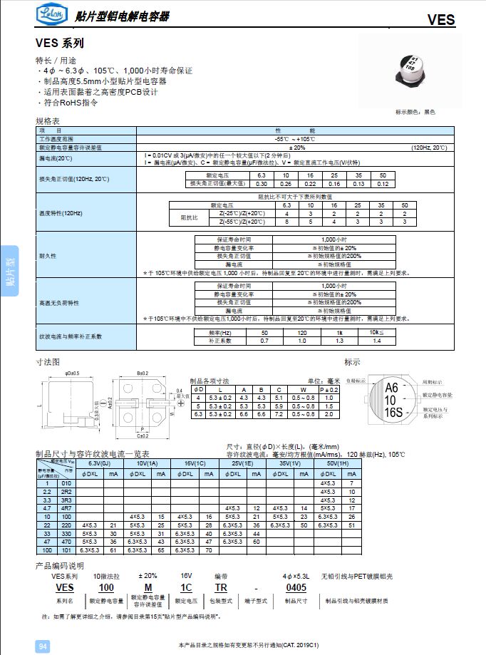 ?4φ ~ 6.3φ, 105℃、1,000小時(shí)壽命保證